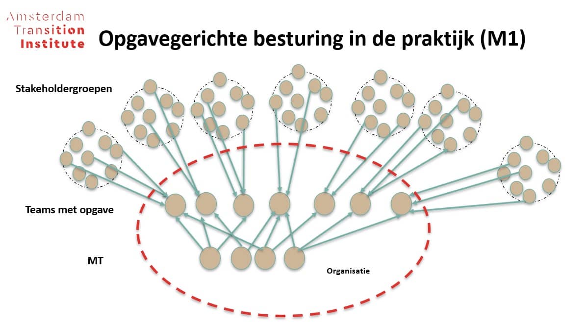 - Hoe kun je ervoor zorgen dat elk organisatieonderdeel zijn eigen verantwoordelijkheid pakt in het realiseren van hun aandeel in de opgave in plaats van kijken naar elkaar?