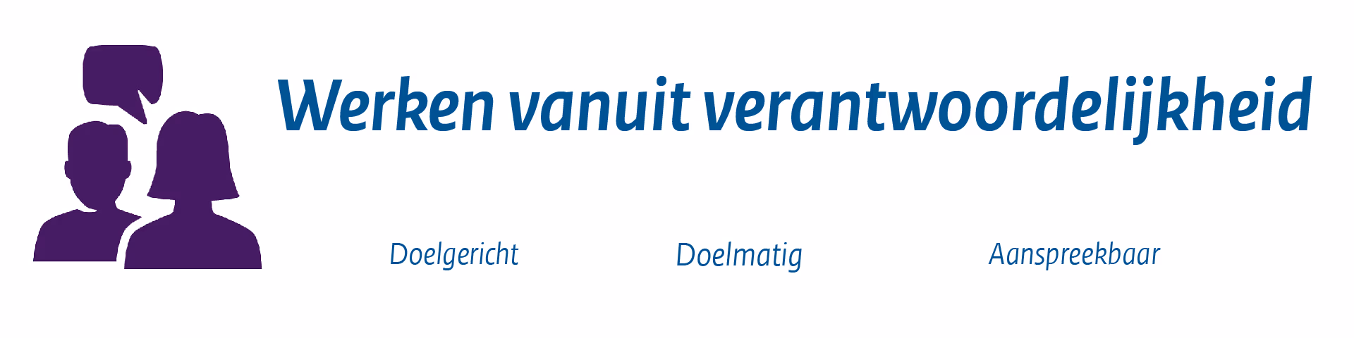 We handelen doelgericht vanuit de opgave. Zo vullen verantwoordelijkheid nemen en opgavegericht werken elkaar aan.
